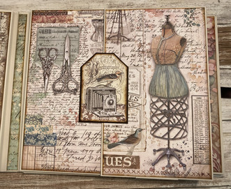 Charlie has created four new mini albums. Her first album features Stamperia's Brocante Antiques collection. These are pictures of just a few of the pages in that album. Click on the first image in the collage, below, to view larger images of each photo.