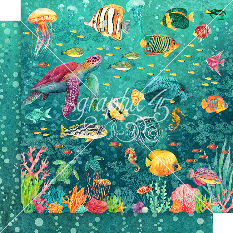 Graphic 45's Seas the Day is now available for preorder. We expect to be able to start shipping this collection by mid May. The collection features colorful exotic creatures of the sea in vibrant colors. It is perfect for scrapbooks and minis albums featuring your summers days and vacations at the beach. To see larger images from this collection click on the photo collage below. This is a link to the collection in our shop: https://www.scrapncreate.com/search?q=Seas+the+day